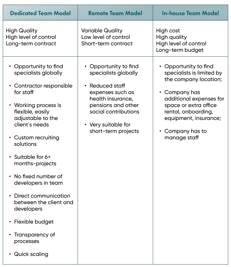 When considering a dedicated code team for the project, the client has to be aware of the specifics of this type of cooperation and possible issues:
