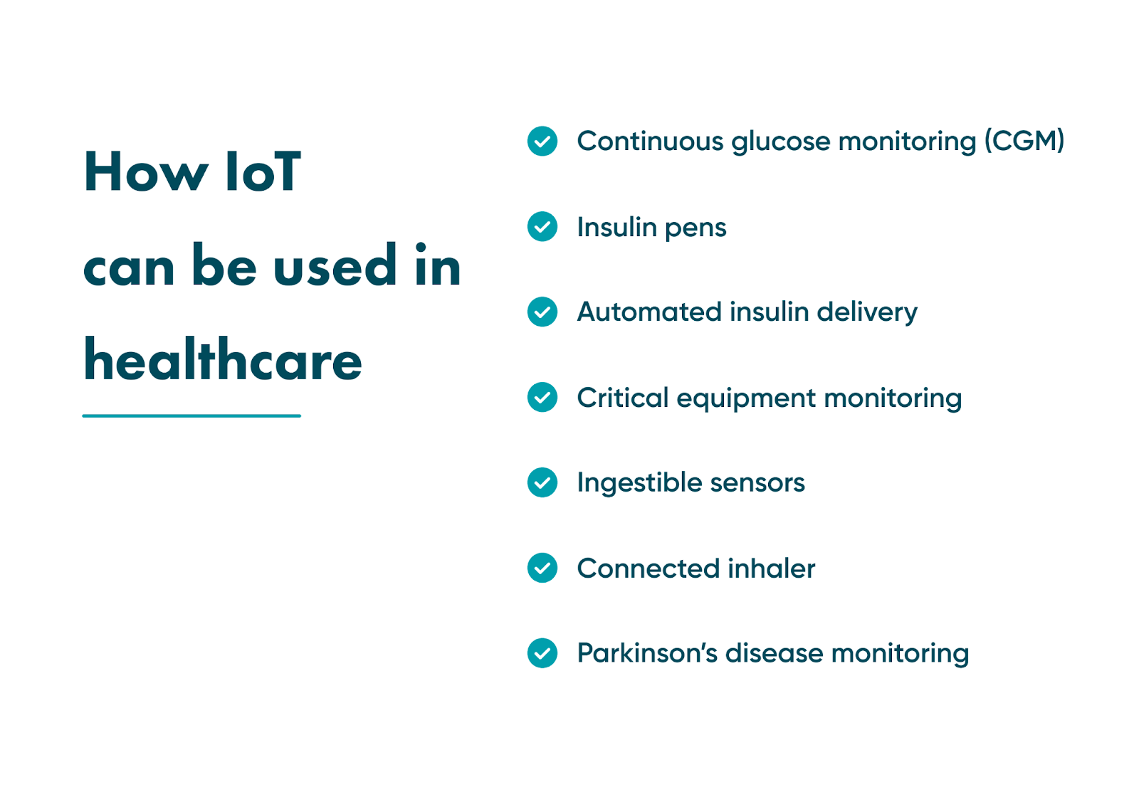 The IoT use cases list includes intelligent continuous glucose monitoring (CGM). Also, there are insulin pens that connect to a mobile app and let users have up-to-date statistics. As well, automated insulin delivery frees patients from worrying about the right time to take insulin injections.